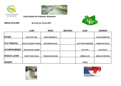 Menus du 8 au 12 juin 2015