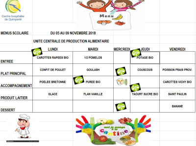 Menus du 05 au 09 novembre 2018