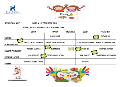 Menus du 03 au 07 décembre 2018