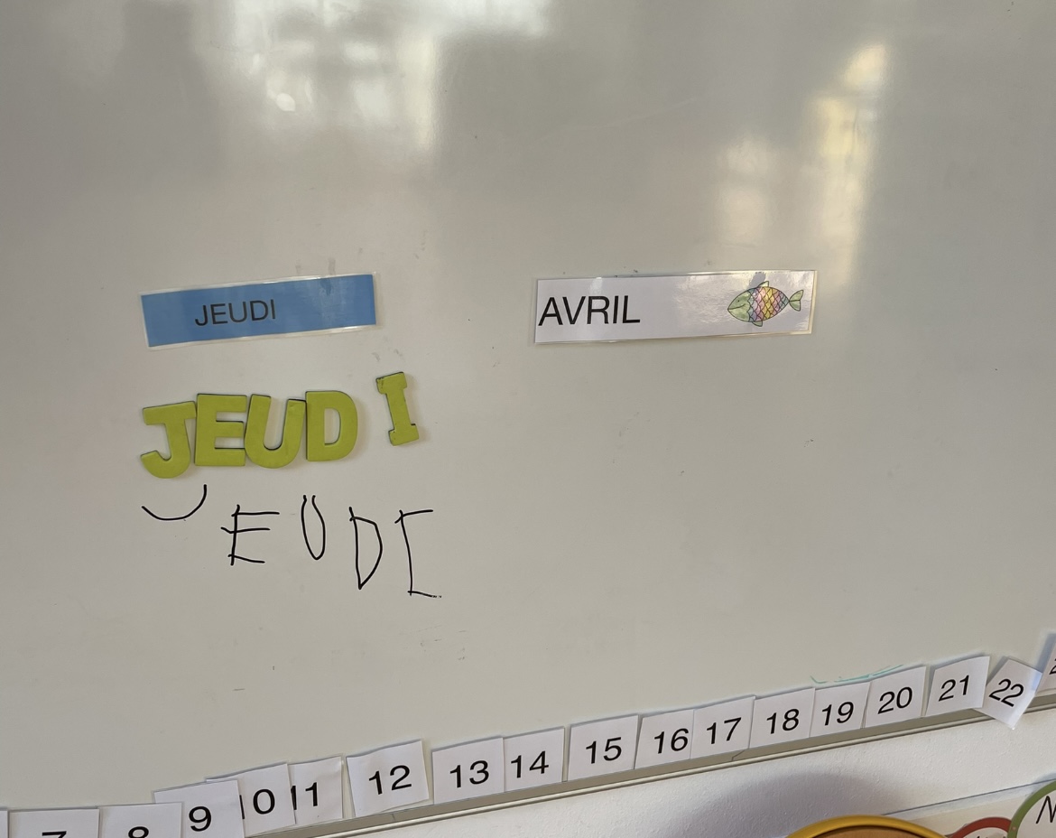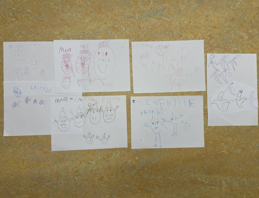 Les GS ont choisi un fruit, ils ont ensuite essayé de l’écrire eux-même. Par la suite nous créerons un jeu des 7 familles avec par exemple dans la famille Ananas : le père, la mère, le grand père, la grand-mère, la fille et le fils.