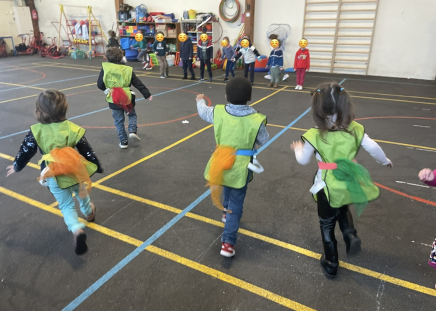 En sport nous avons joué à la queue du diable, les élèves sont à la fois défenseur et attaquant, ce n’est pas facile de jouer les deux rôle à la fois.