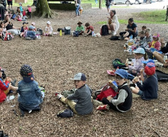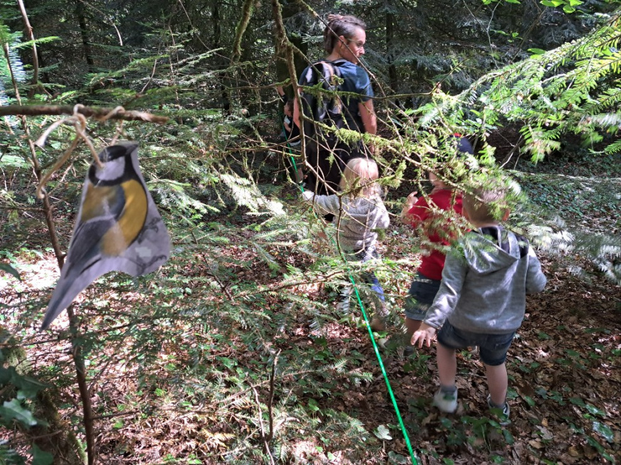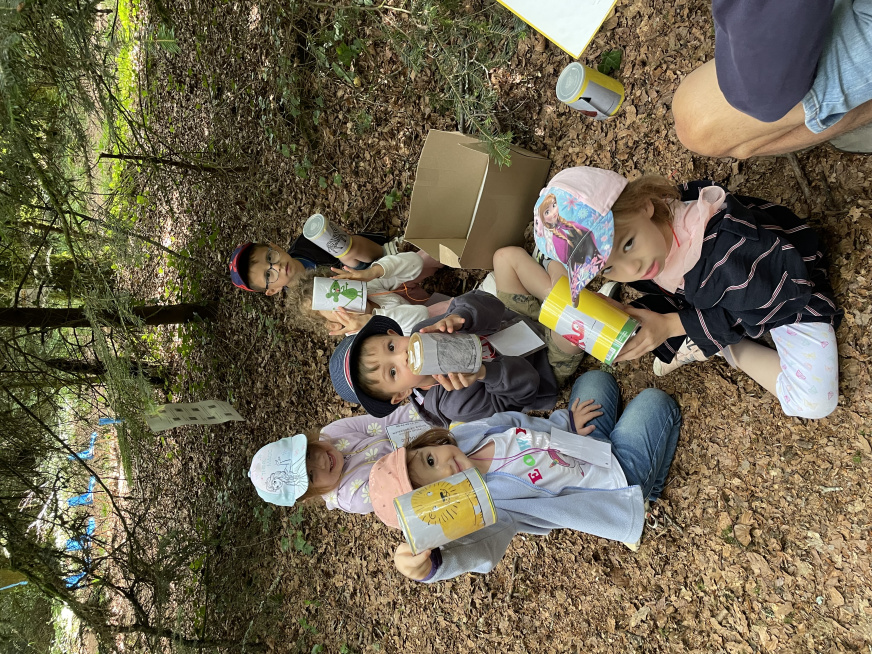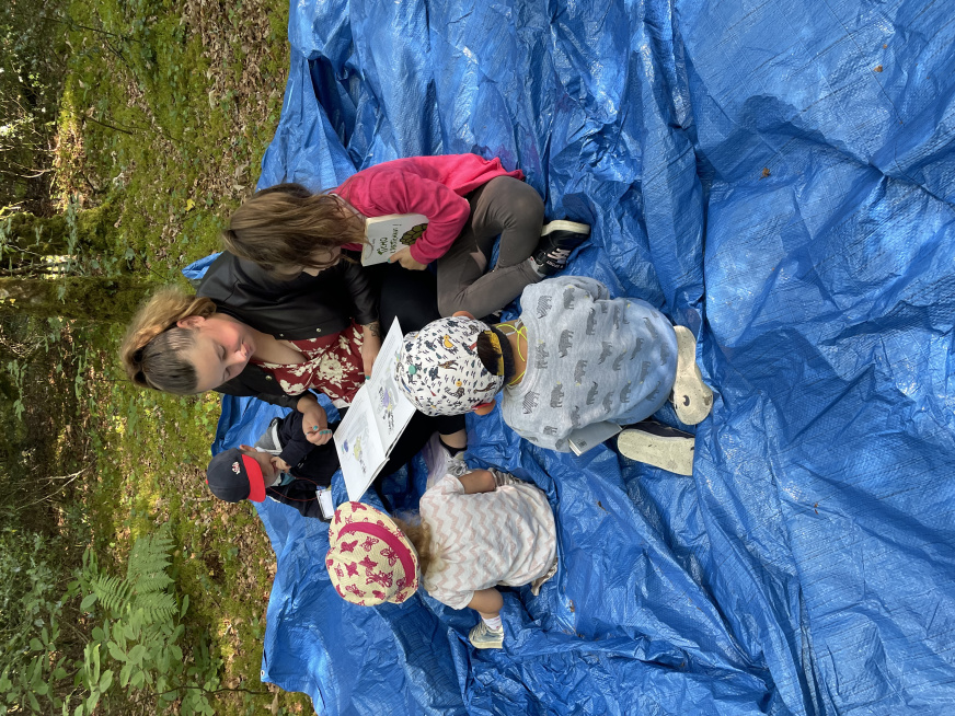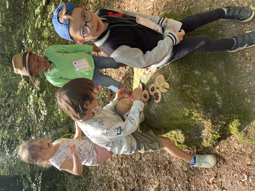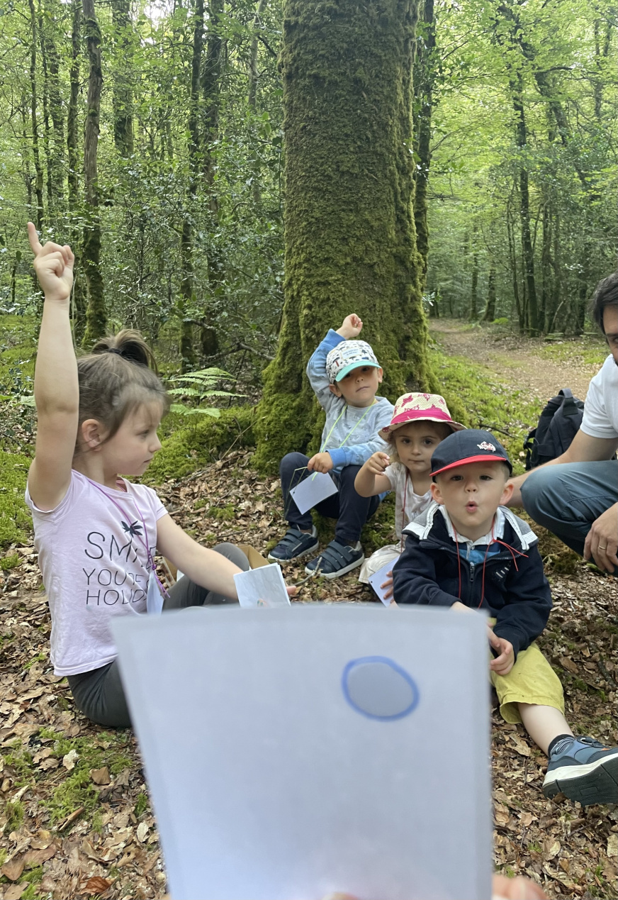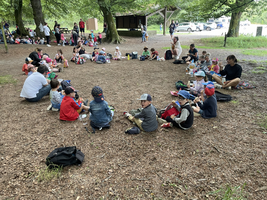 Les classes maternelles de Querrien (Classe monolingue TPS-PS-MS-GS de Romane Durand et Enrick Le bihan et maternelle bilingue TPS-PS-GS de Marrick Jasserand et Sylvie Bourhis) ont réalisé une sortie à la forêt de Toulfoen.