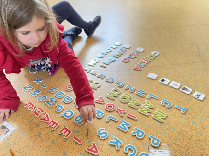 Puis de la phonologie, les élèves essayent d’écrire des mots grâce aux sons des lettres.