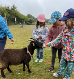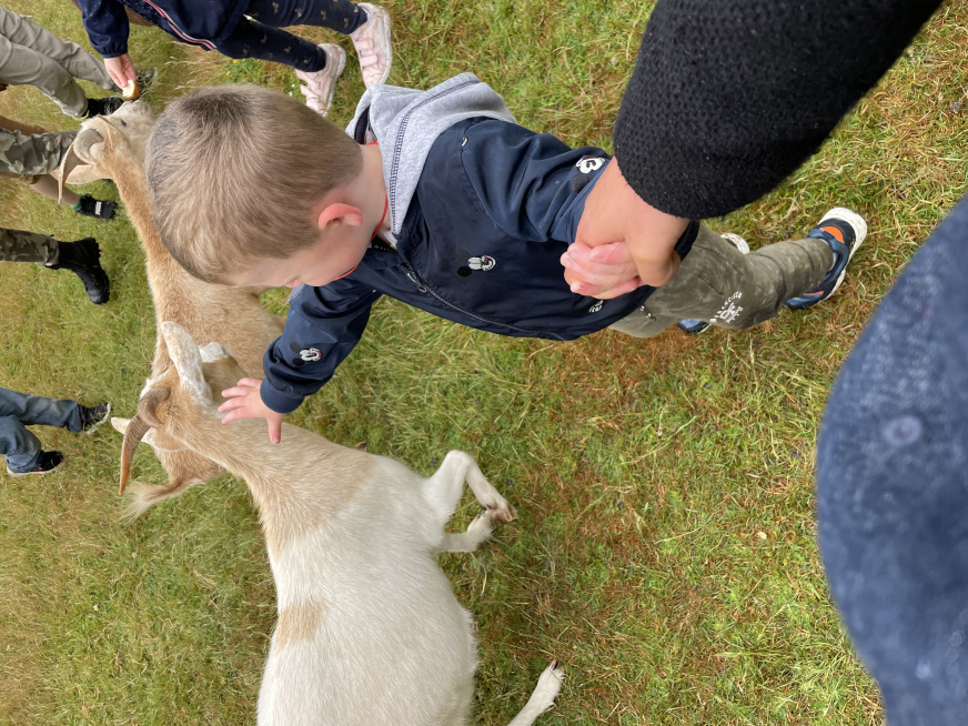Ce qui a particulièrement enchanté les enfants, c’est le « parc des chèvres naines », où ils ont pu interagir directement avec les animaux. Les enfants ont pu les toucher, les caresser et même les prendre dans leurs bras. Grâce à ce contact direct, nos élèves ont appris à approcher les animaux sans les effrayer.