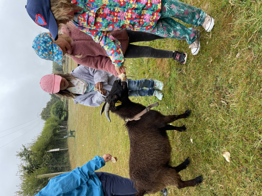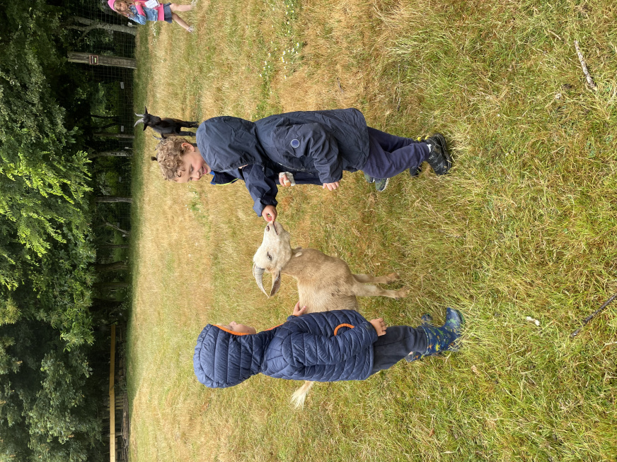 Petite surprise à la fin de la visite, pendant que les élèves s’amusaient sur les aires de jeux, une chèvre à mis au monde deux chevreaux. Les enfants ont pu observer une chèvre d’à peine 1 minute essayant de se tenir debout. Une belle surprise pour terminer la journée.
