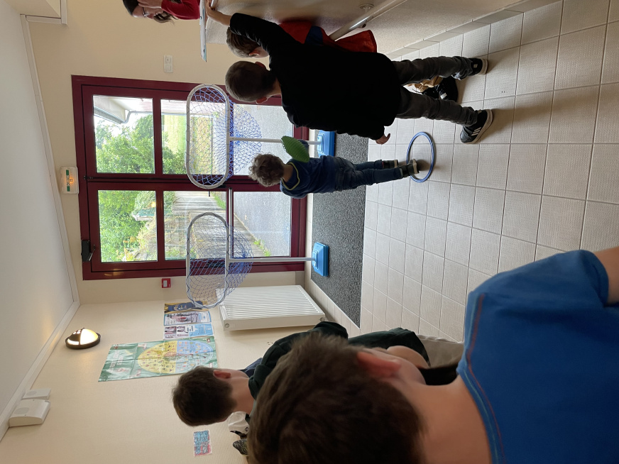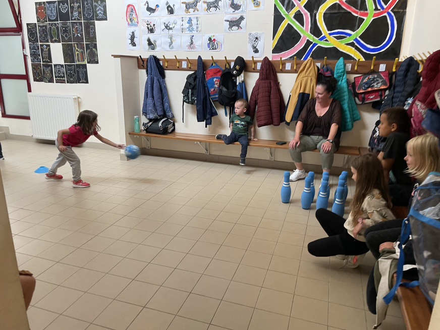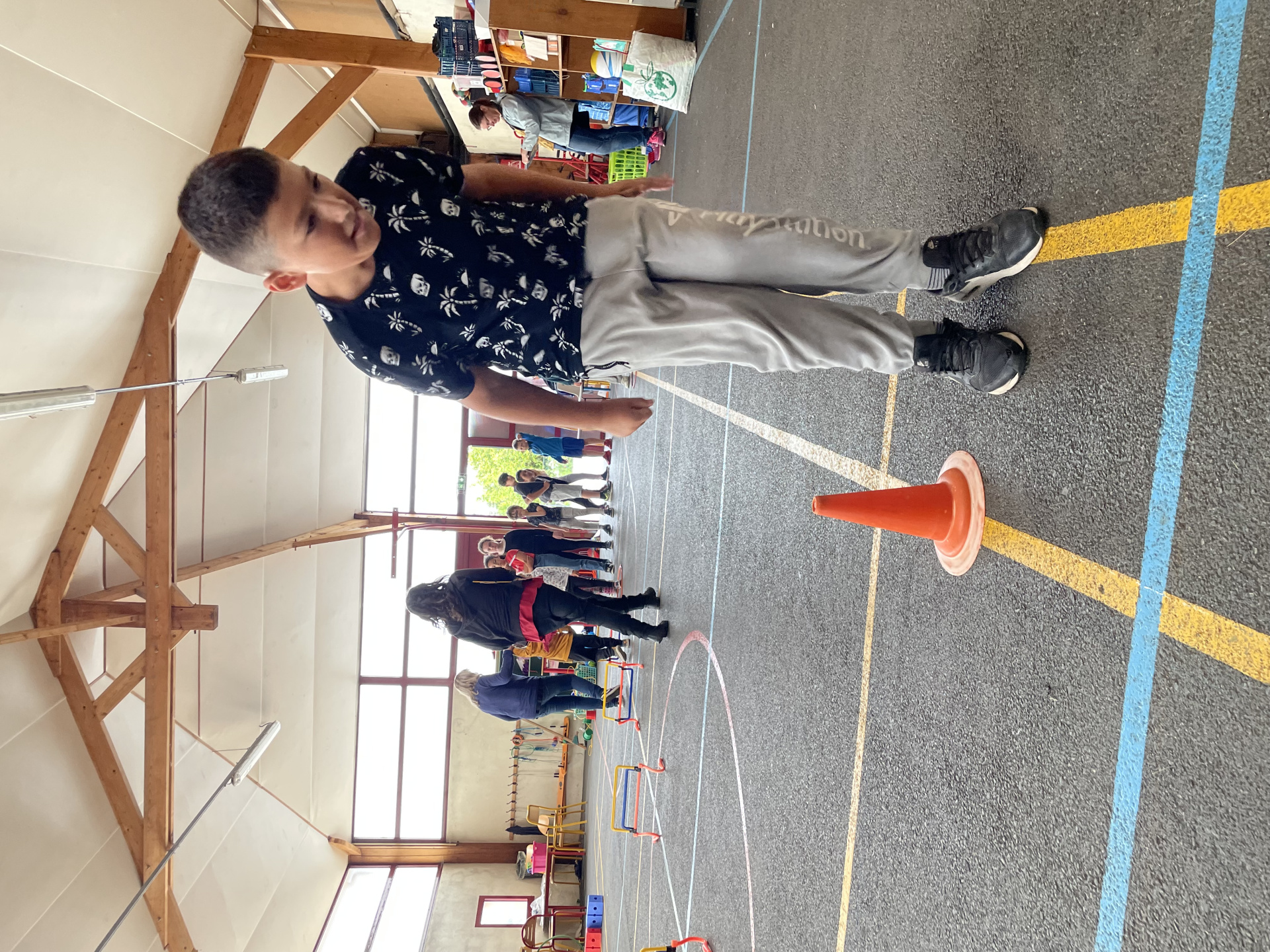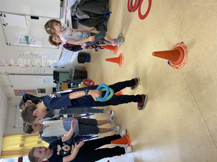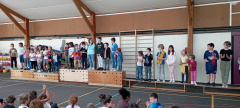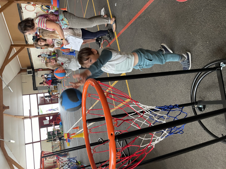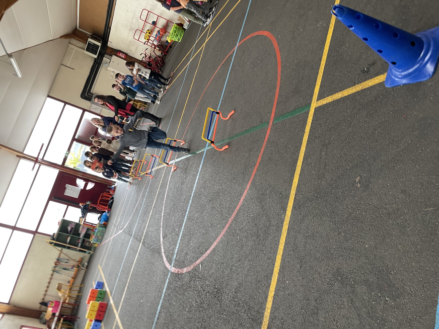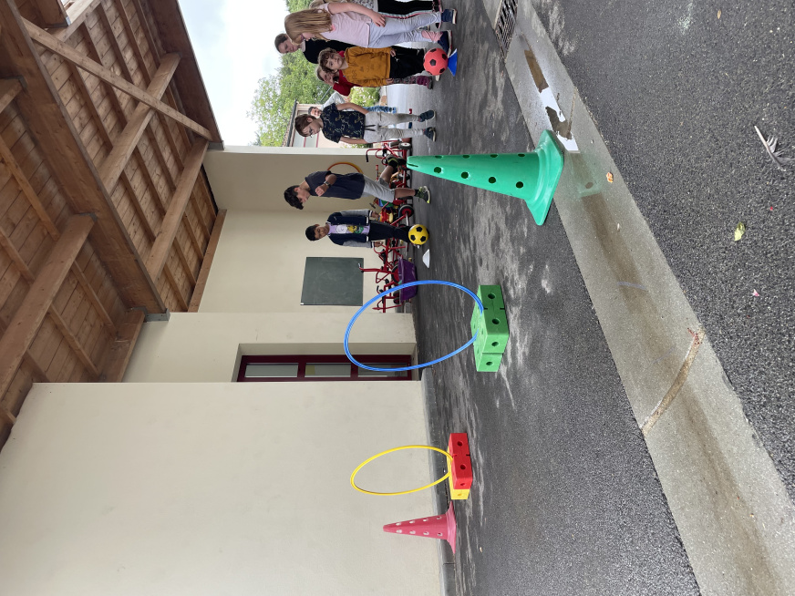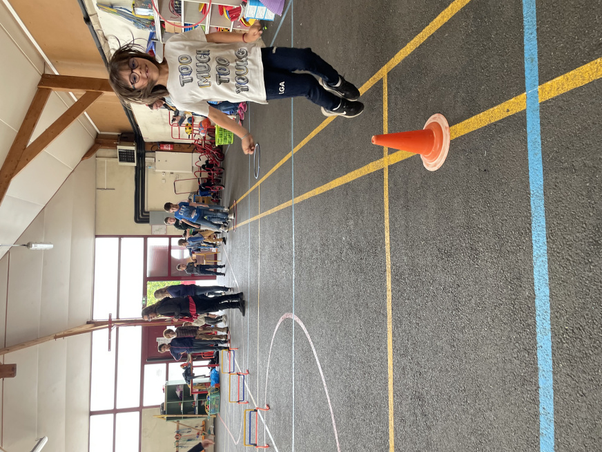 Les Olympiades du 4 juillet se sont tenues dans les bâtiments de l’école à cause la météo. Une organisation de dernière minute mais qui a permis de maintenir l’événement qui s’est bien déroulé. Avec l’aide de quelques parents, les adultes conduisaient 10 ateliers sportifs et les 10 équipes d’élèves de la TPS au CM2 tournaient dans chaque atelier. Ils ont pratiqué de la course en échasse, du relais haie, une course de saut, du basket, du bowling, du lancer d’anneaux, jouer à la chaine des pompiers pour vider une caisse d’objets, lancer dans des filets et enfin du tir au but.