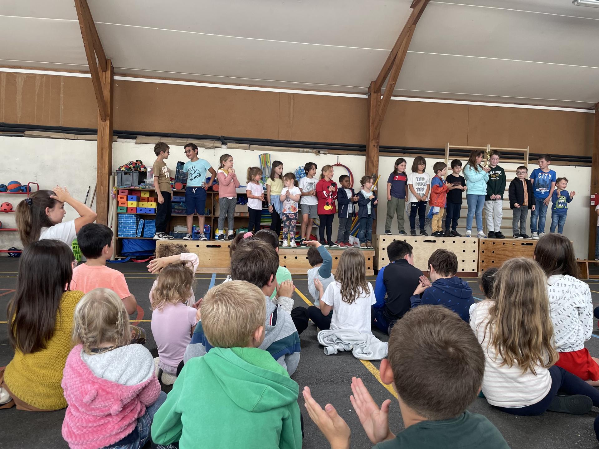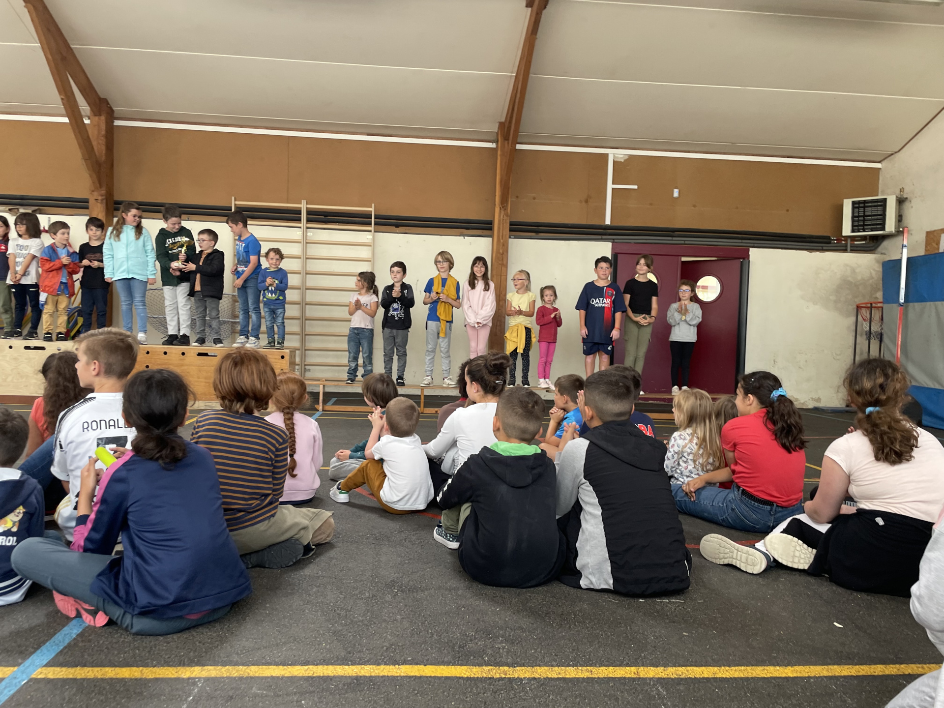 La matinée s’est clôturée par l’annonce des résultats : chaque équipe était applaudie par tout le monde. Les trois premières équipes ont pu monter sur le podium et la première équipe a remporté la coupe des Olympiades qui sera remise en jeu l’an prochain. Chaque élève était engagé et a fait preuve de fair-play ! Un bon respect des valeurs olympiques !